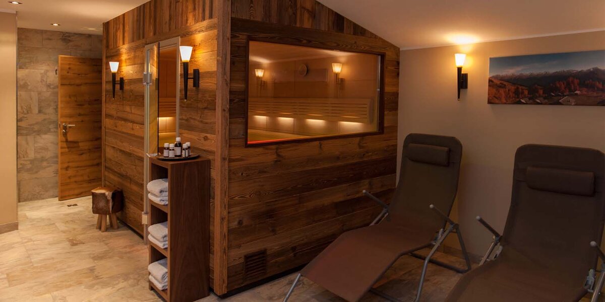 Nach einem herrlichen Skitag finden Sie in unserer schönen Altholzsauna (Finnische Sauna und Biosauna) tiefgehende Entspannung. Dank eines direkten Zugangs ins Freie, können sich begeisterte Saunagänger direkt im Schnee abkühlen.